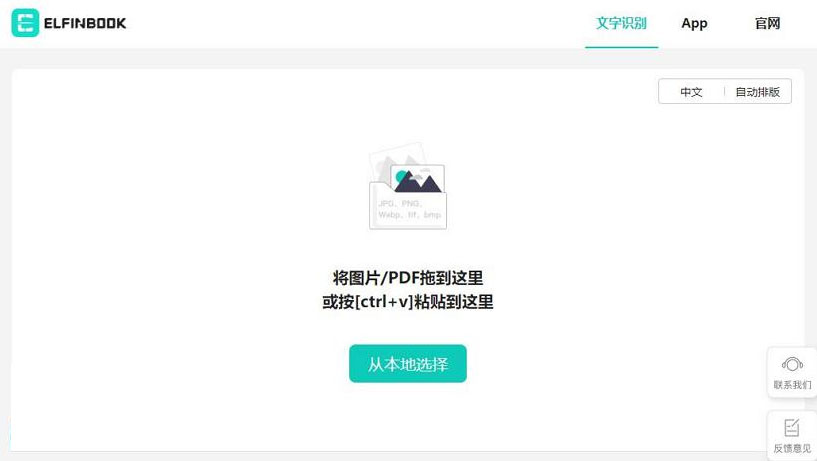 2、如上图所示,我们可以地啊你“从本地选择”来上传本地硬盘上需要ocr识别的图片或是pdf文件,也可以通过ctrl+V的快捷键将文件直接粘贴上传进行识别;