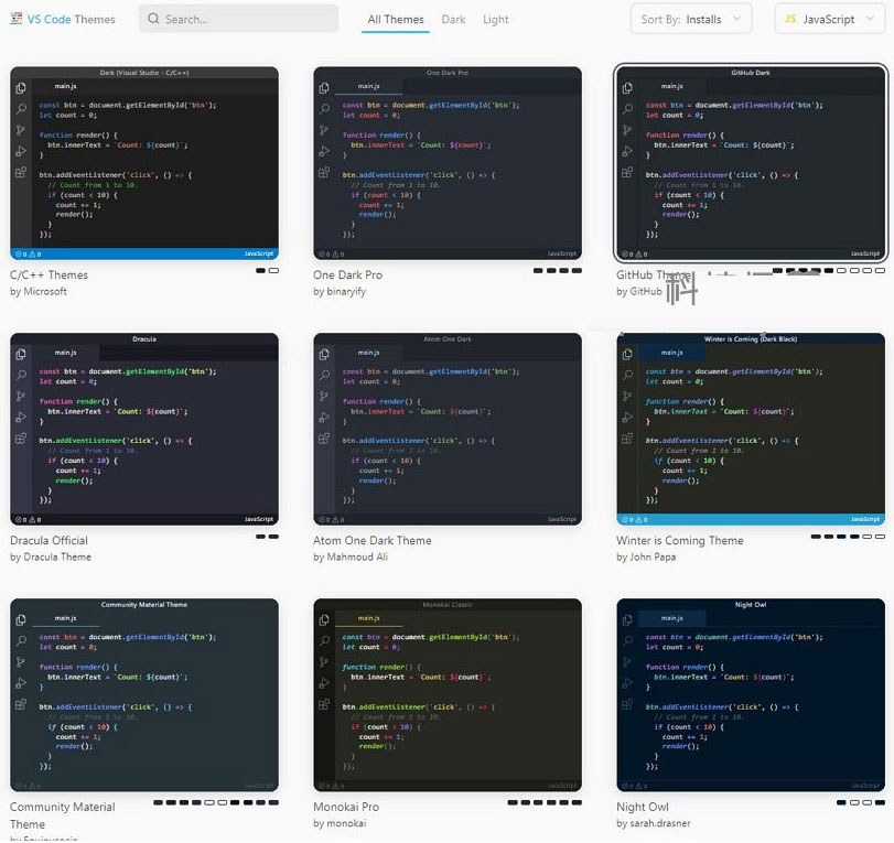 VS Code Themes – VS Code主题插件下载网站(含下载教程)
