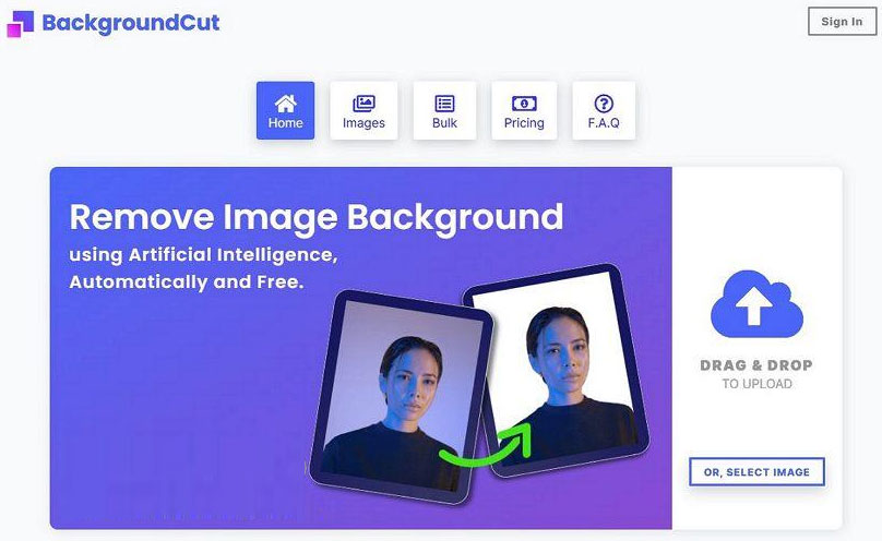 BackgroundCut是一个免费在线抠图工具,能够帮助我们非常方便的在线对图片照片进行抠图处理,我们只需要把照片上传到网站,并且支持拖放操作,该在线工具就能通过AI技术就会自动去除去图片照片中的背景,甚至可以把背景换成其他颜色,既简单又好用。