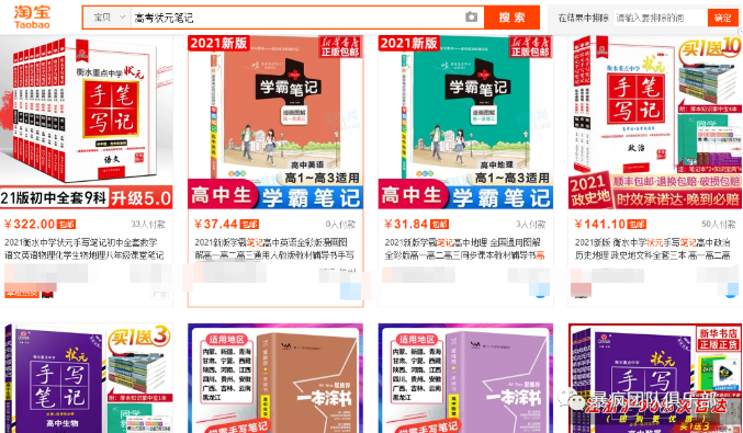 关于高考,有一些比较有噱头的产品也可以在线上售卖,比如高考状元的学习笔记,这个听起来本身就是一大噱头产品,每个地区每个学校教学是不一样的,但就这种噱头产品依旧有很多人抢购。