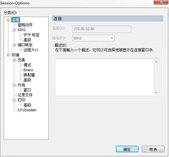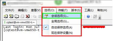 首先,在电脑上打开SecureCRT,选择“选项(O)”->"会话选项(S)...",进入会话选项的对话框进行配置