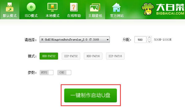 1.准备启动U盘:将U盘插入电脑,打开大白菜制作工具,选择“一键制作启动优盘”来准备启动盘。