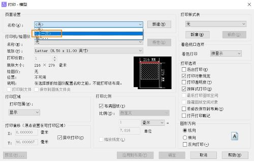设置完打印样式时,点击一下【预览】或【确定】,下次无论是新建图纸还是重启软件,都可以在打印功能的【页面设置-名称】中选择【上一次】,来加载上一次打印页面的设置。