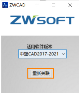 4. 双击中望CAD软件图标,启动程序,在弹出的【文件关联警示】框中按步骤操作,重新建立文件关联。
