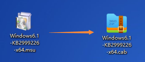 2.将其复制到易于查找的文件夹,例如直接放在桌面。将该文件的后缀名【msu】,替换成【cab】,此时该文件会变成压缩包。