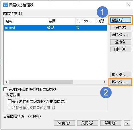b.点击【新建】,创建【新图层状态名】,然后点击【输出】,把刚创建的图层状态文件保存;