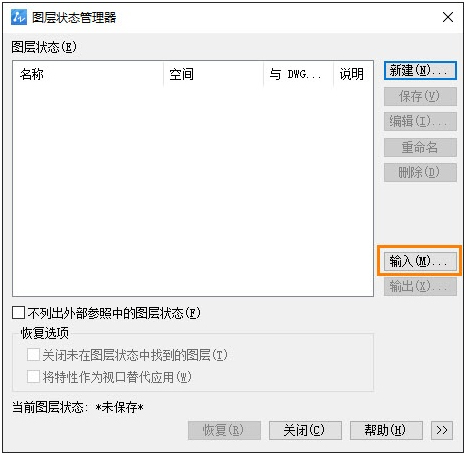 d.点击【输入】,选择刚刚保存的图层状态文件,完成后,纸A中的图层状态已全部导入图纸B中。