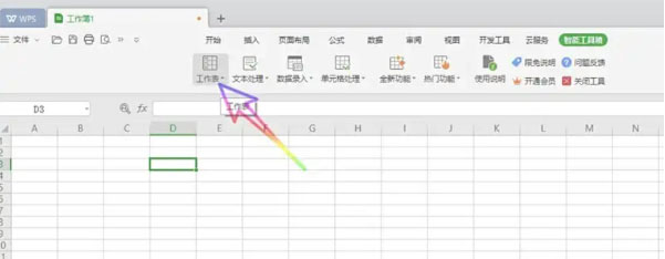 在功能区找到“工作表”选项并点击打开。