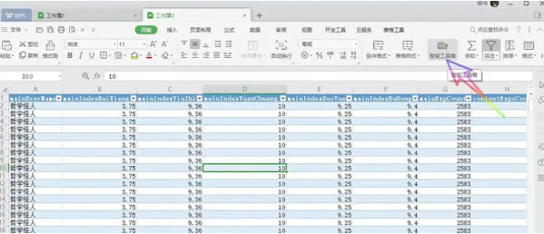 点击 WPS 表格界面右上角的 「智能工具箱」 选项卡(图标为橙色工具箱图案)。