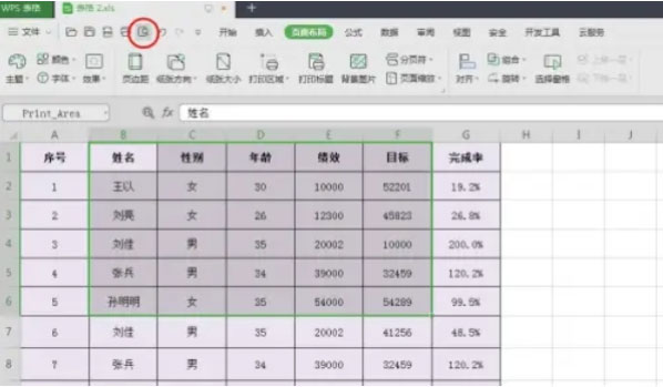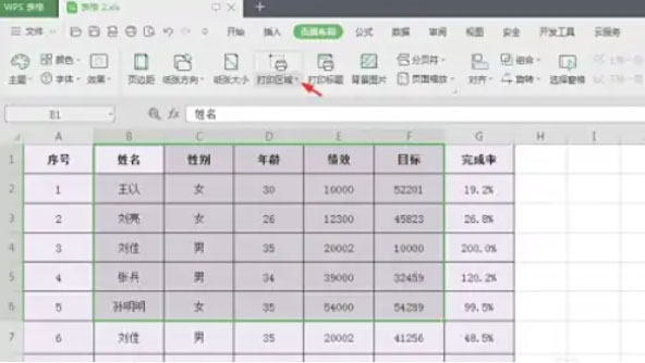 点击顶部菜单栏的「页面布局」选项卡在「页面设置」功能区找到「打印区域」按钮