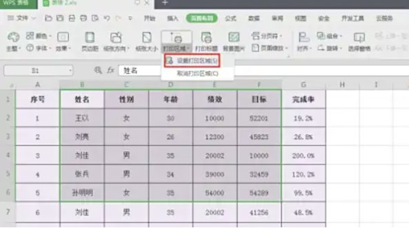 点击「设置打印区域」选项