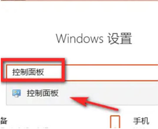 在设置页面中,搜索“控制面板”并点击打开。