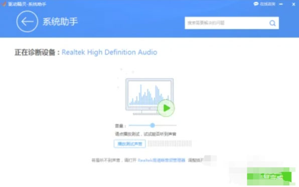 A-A+ 驱动精灵怎么进行声音修复_驱动精灵进行声音修复的方法 2026年04月26日 软件应用 暂无评论 驱动精灵提供声音修复功能:开启软件后,进入百宝箱,点击声音修复,执行立即诊断。软件自动检测并修复问题,完成后测试声音并确认即可。 第一步 开启电脑上的驱动精灵软件 第二步 在软件界面中点击【百宝箱】选项。 第三步 进入百宝箱界面后,找到并点击其中的【声音修复】功能。 第四步 在声音修复功能页面,点击【立即诊断】按钮,软件将开始对声音问题进行检测。 第五步 耐心等待软件完成诊断,诊断结束后软件会自动进行修复。 第六步 修复完成后,进行声音测试,确认声音正常后,点击【修复完成】按钮即可。